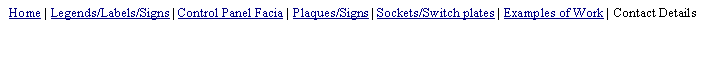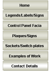 Legends, labels, signs, control panel facia, valve tags, identification tags, plaques, name plates, door signs, badges, information panels, memorial plaques, reverse engraving, machine diagrams, safety signs, switches etc. |